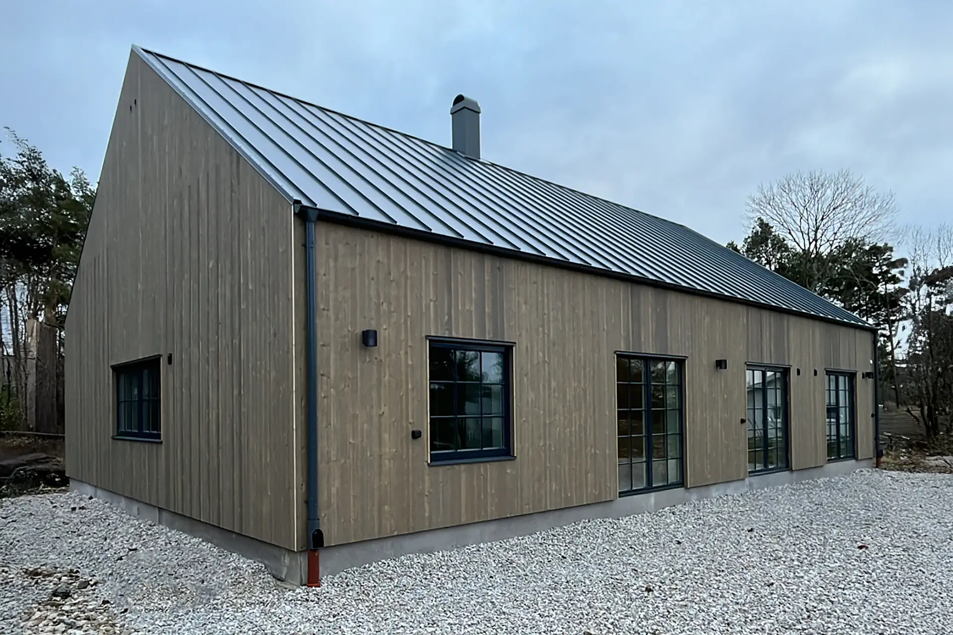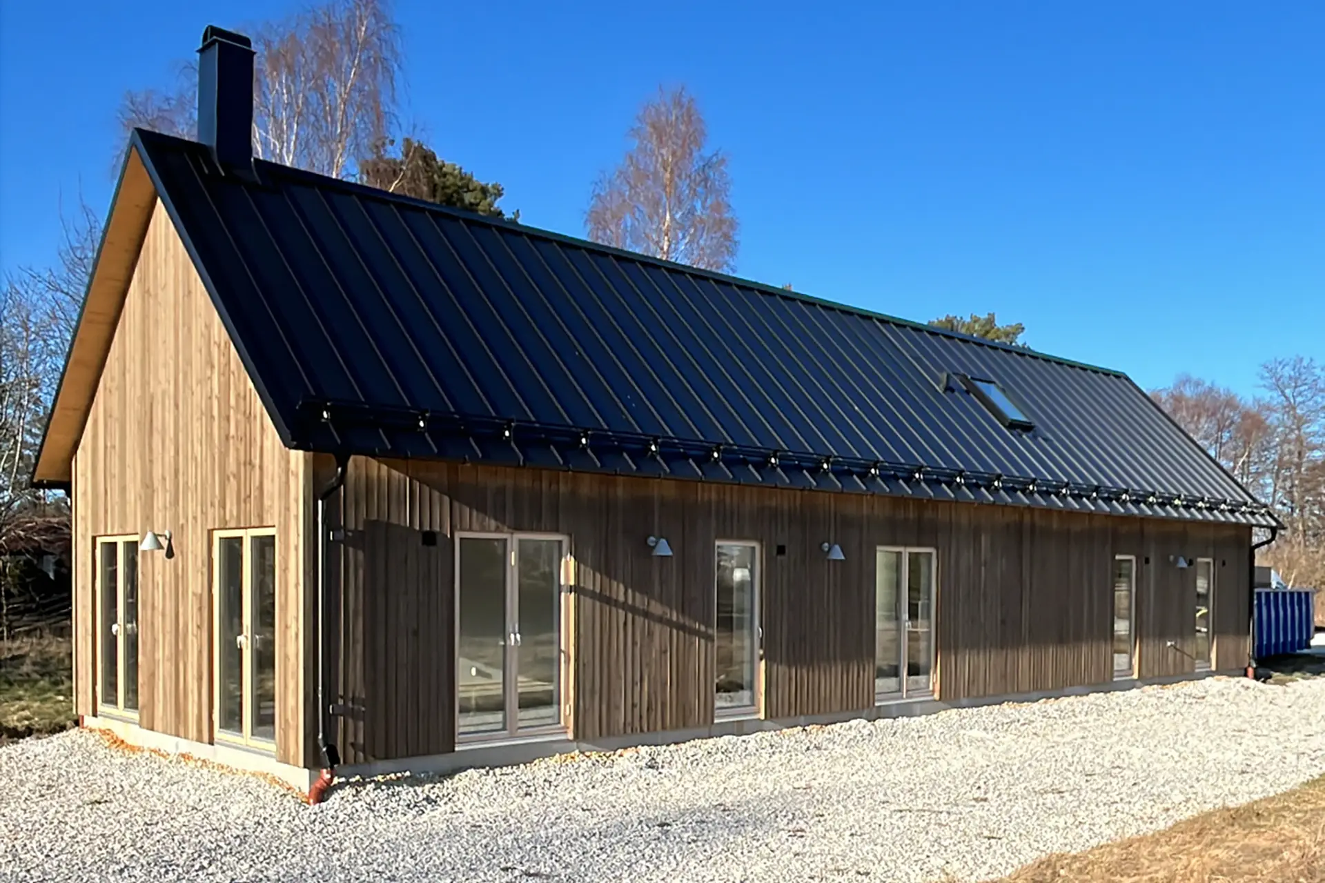 Villa H ett passionsprojekt som vi har jobbat på under 2023, väldigt kul att se slutresultatet. Ribborna på pergolan och vid groventré är behandlade och kommer få samma nyans som panelen på fasaden.